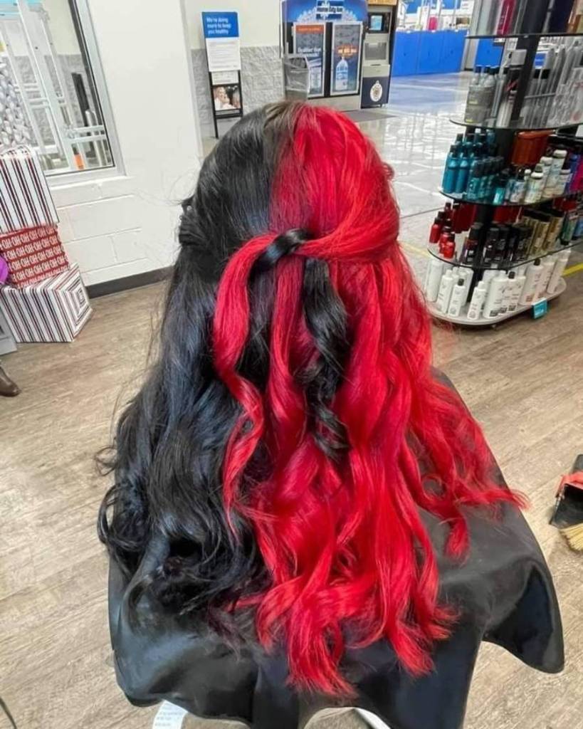 The dip-dye technique involves coloring the ends of your hair in a vibrant red while leaving the roots black. This style is bold and fun, and since it’s concentrated at the tips, it’s easier to maintain than full-head highlights.