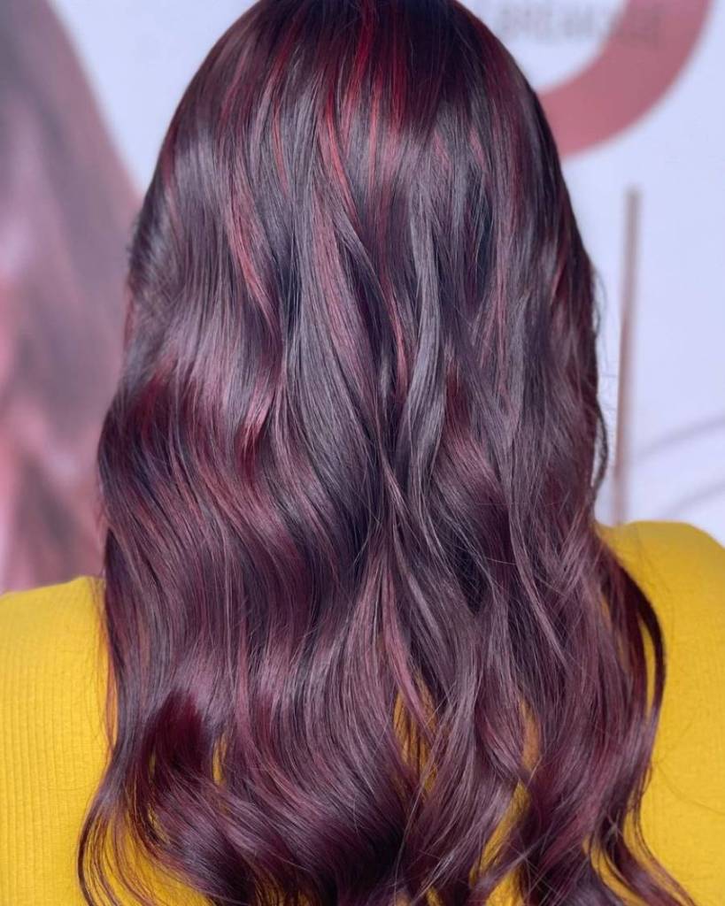 Plum highlights mix red with purple undertones, creating a sultry, sophisticated look. This is a fantastic option for those who want a darker red that still has a noticeable pop of color.