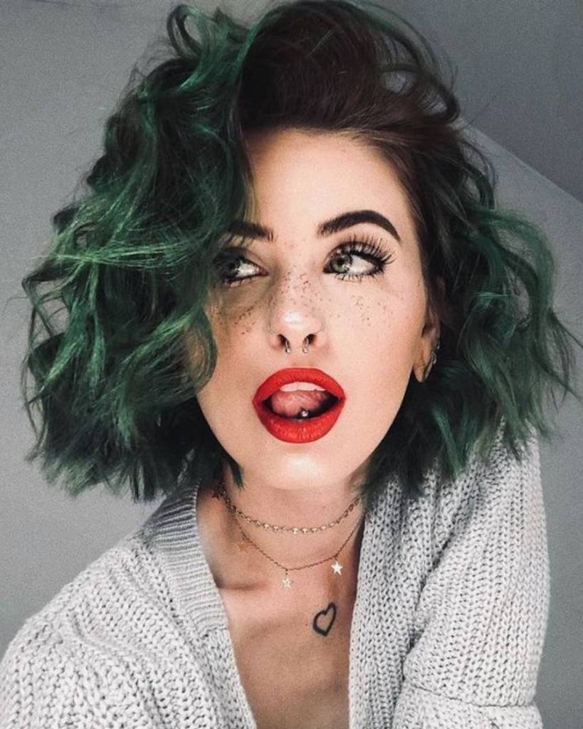 Get in touch with your inner sea goddess by rocking some long, flowing mermaid green hair! This hairstyle mixes dark green and teal shades for a totally magical, dreamy look that’s just right for all you fantasy lovers out there.