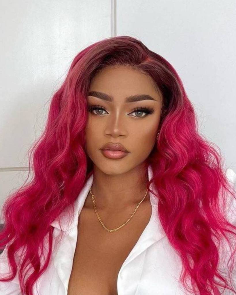 The transition from the darker roots to the vibrant pink keeps the look balanced, so it doesn’t feel too overwhelming. A bit of styling cream to keep those waves in check, and you’re set for any occasion!