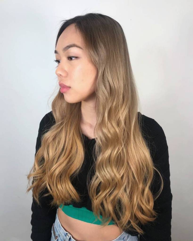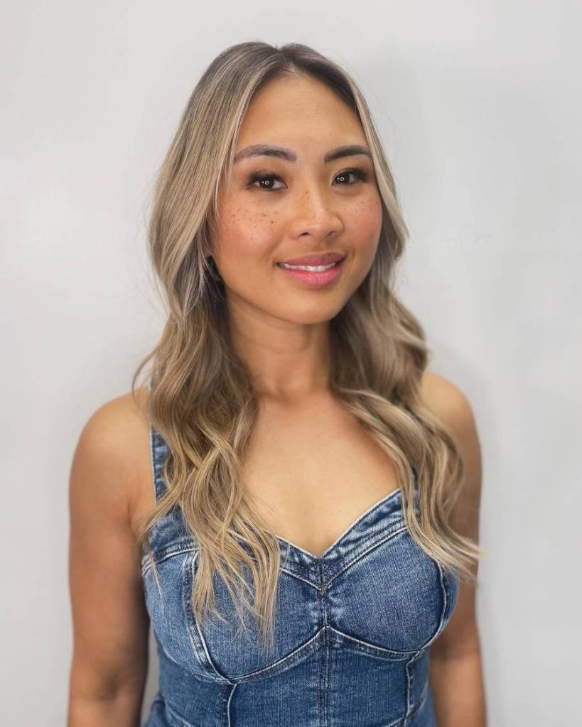 Another take on long wavy hair, this look channels your inner goddess with soft, voluminous waves that cascade down your back. The honey brown color enhances the golden hues in the waves, giving a luminous, radiant effect.