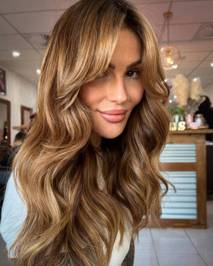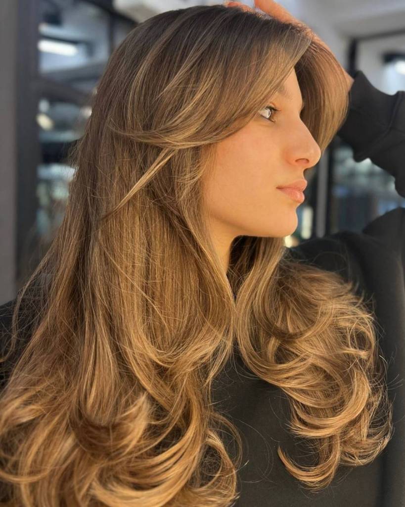 For a laid-back, undone look, long tousled hair is the perfect choice. This style embraces natural texture, with the honey brown color adding depth and richness to the tousled waves. It’s a carefree, effortless look that’s perfect for everyday wear.