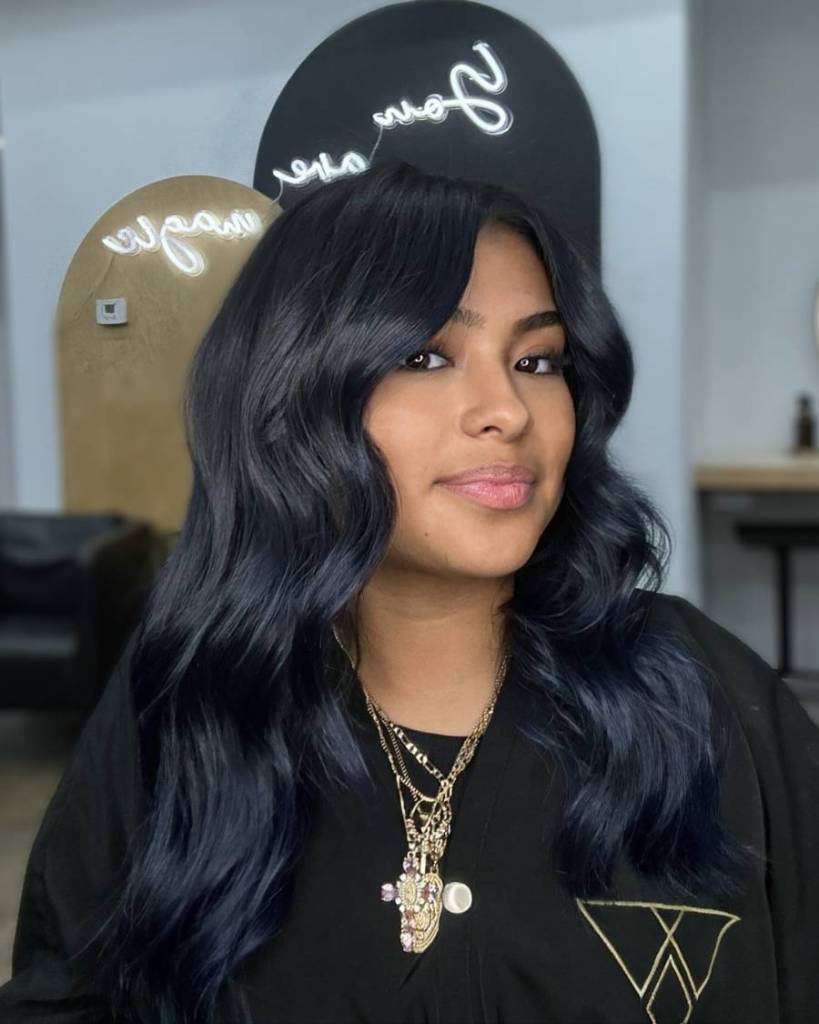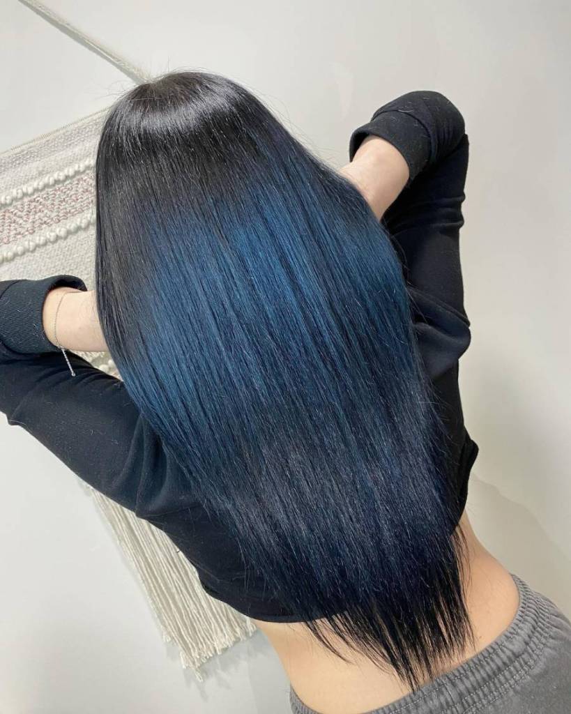 First up, the color is on another level—it’s this super deep, dark blue that just levels with the natural black roots. The way it’s layered in makes the hair pop, so it never feels flat or boring.